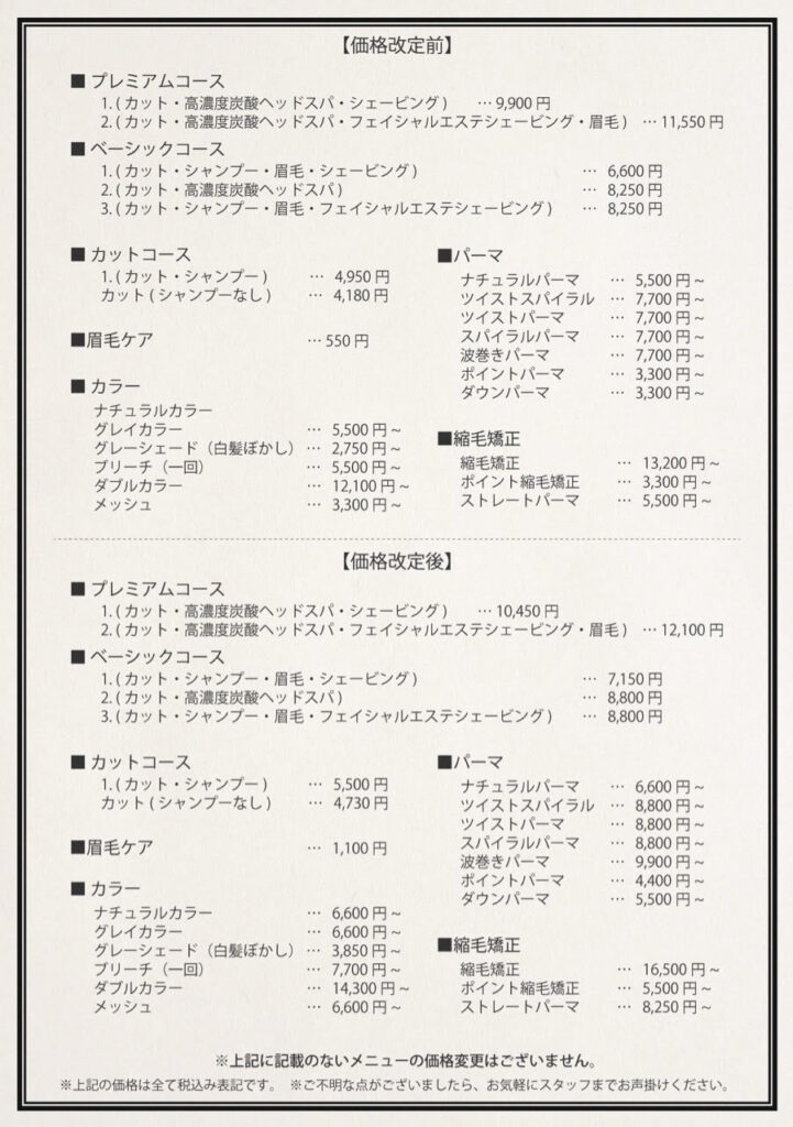 いつもSKY GROUPをご利用いただき、ありがとうございます。 この度、2026年4月1日より一部メニューの価格改定を実施させていただくこととなりましたので、お知らせいたします。 弊社ではお客様にご満足いただけるサービスの提供に努めてまいりましたが、原材料の仕入れ価格やエネルギー価格、人件費の高騰により、現行価格の維持が困難な状況となっております。 つきましては誠に不本意ではございますが、以下の通り価格改定をさせていただきます。